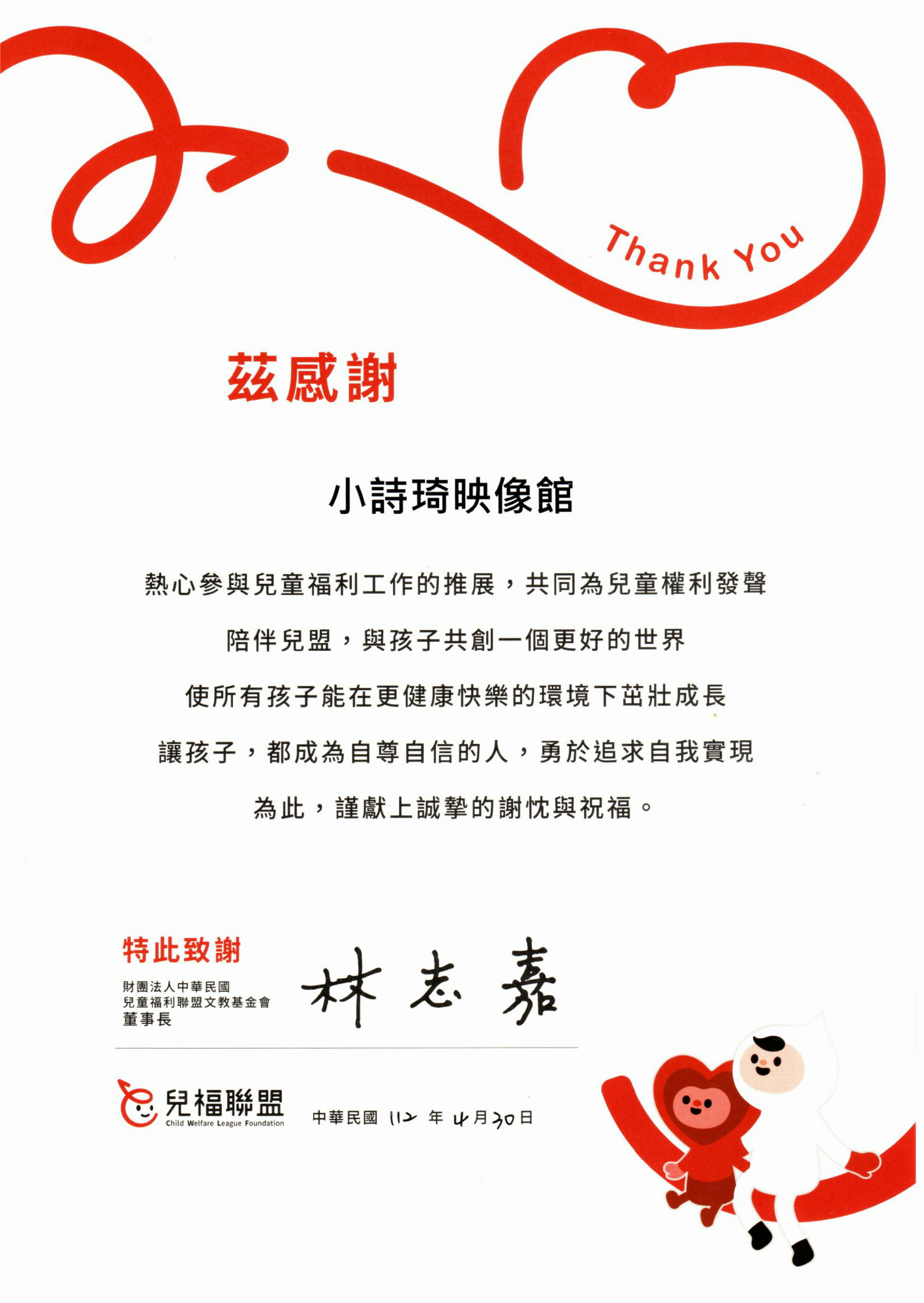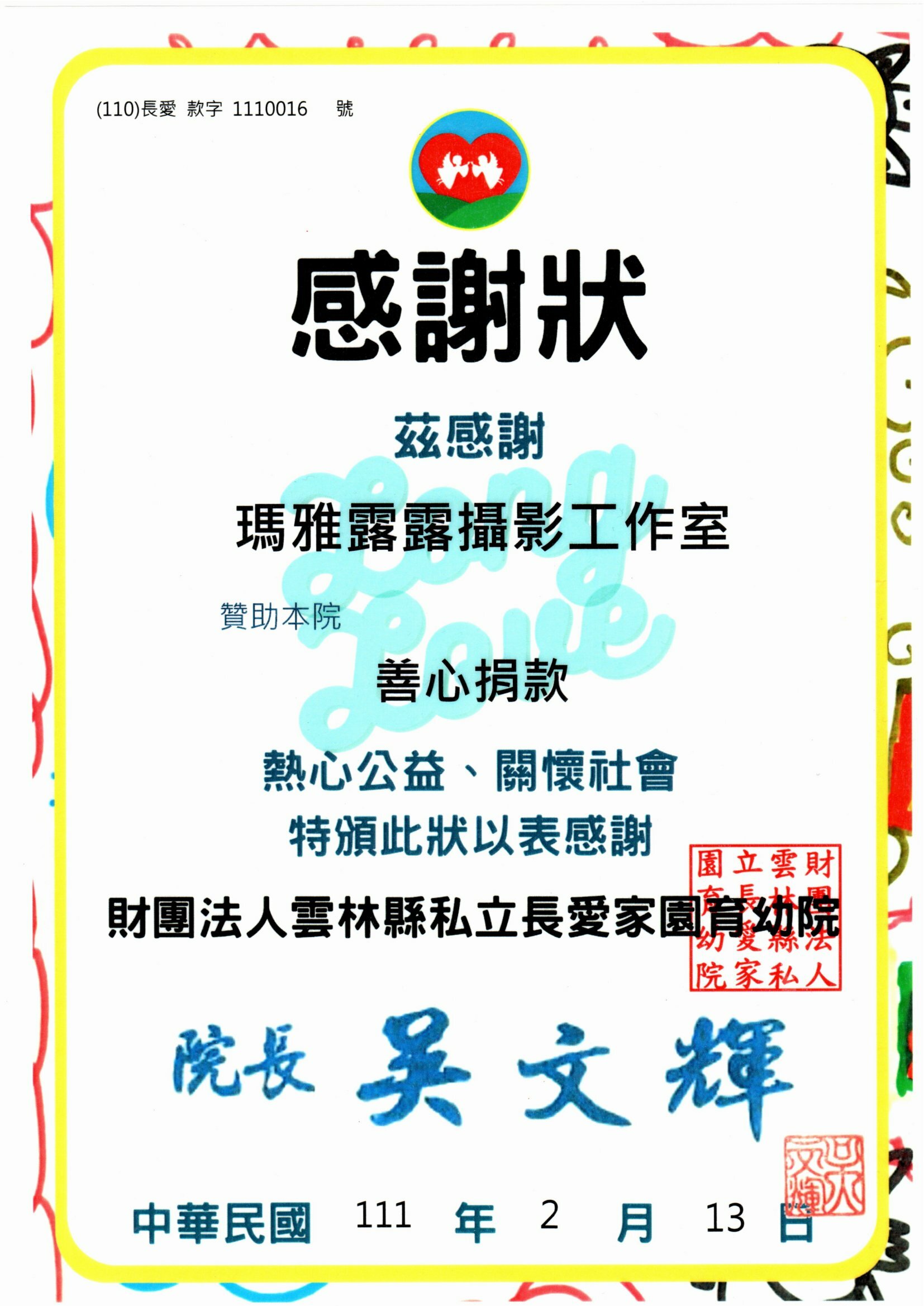 各單位愛心感謝狀
